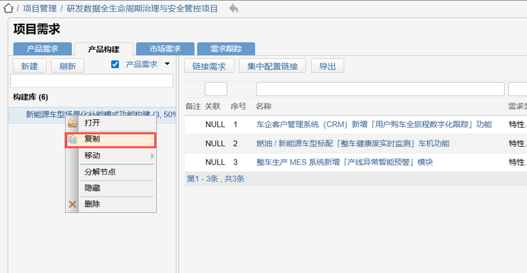 产品构建项目内复制:新增同项目下产品构建复制能力,复制时将同步产品构建自身基础信息及关联单据,实现同项目内产品构建快速复用,减少重复操作。